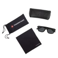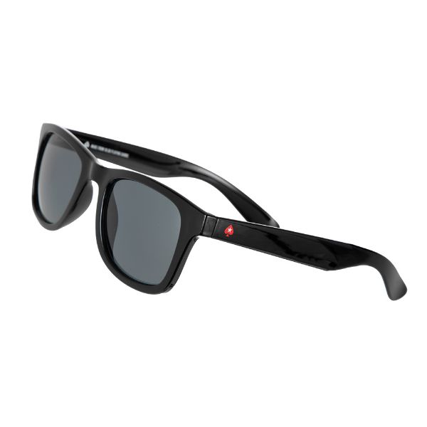 Kort til at spille bliver til en brille. Der er brugt genanvendte spillekort til at fremstille disse blanke sorte solbriller i plast. De har polariseret UV400-glas og leveres med pudseklud i mikrofiber, plastpose og PU-læderetui. Alt tilbehør er lavet af genbrugsmateriale.