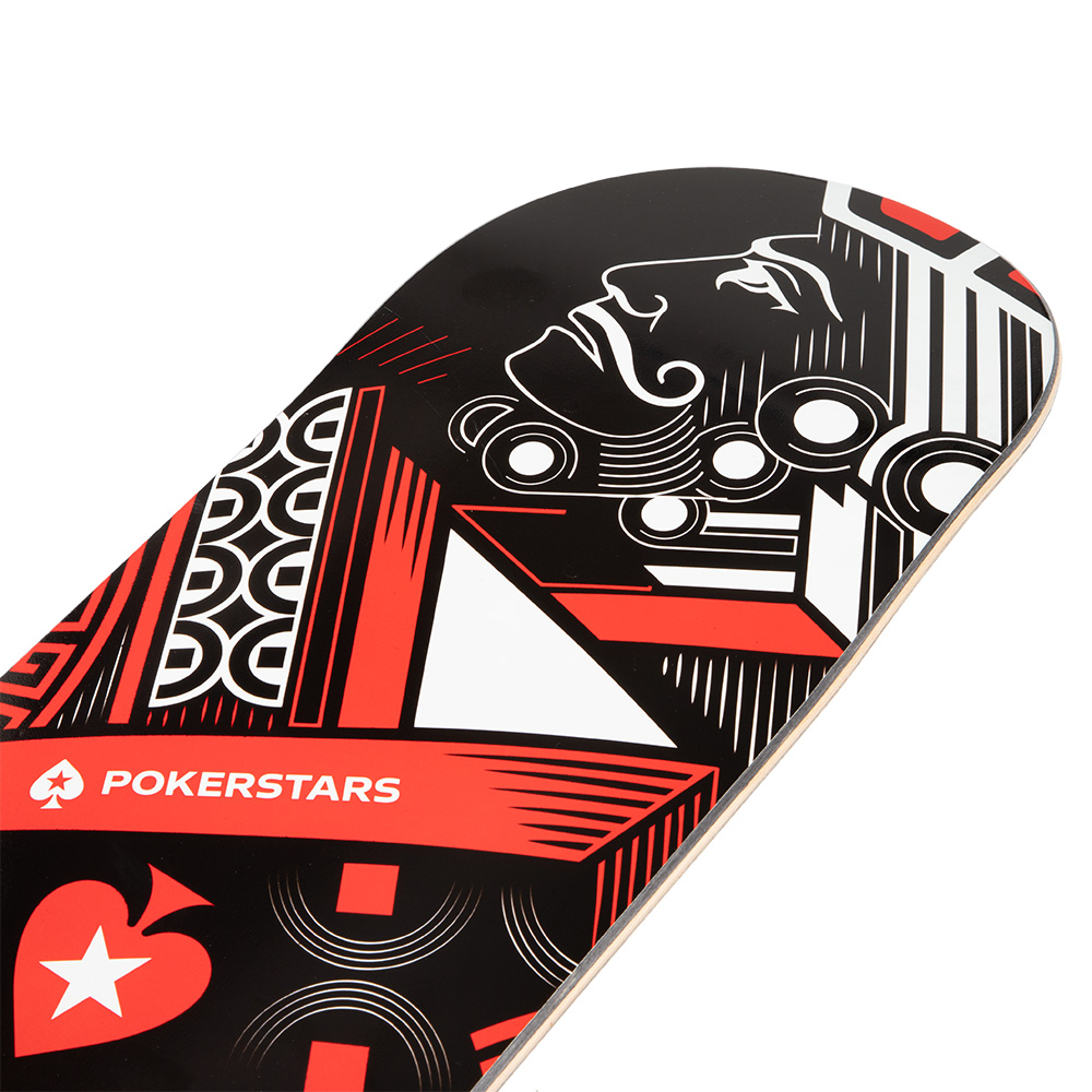 Kanada vahtrapuust PokerStarsi erilise kujundusega tavamõõtudes rulalaud. Tänaval ja half pipe's sõitmiseks. Komplekti ei kuulu rattad.