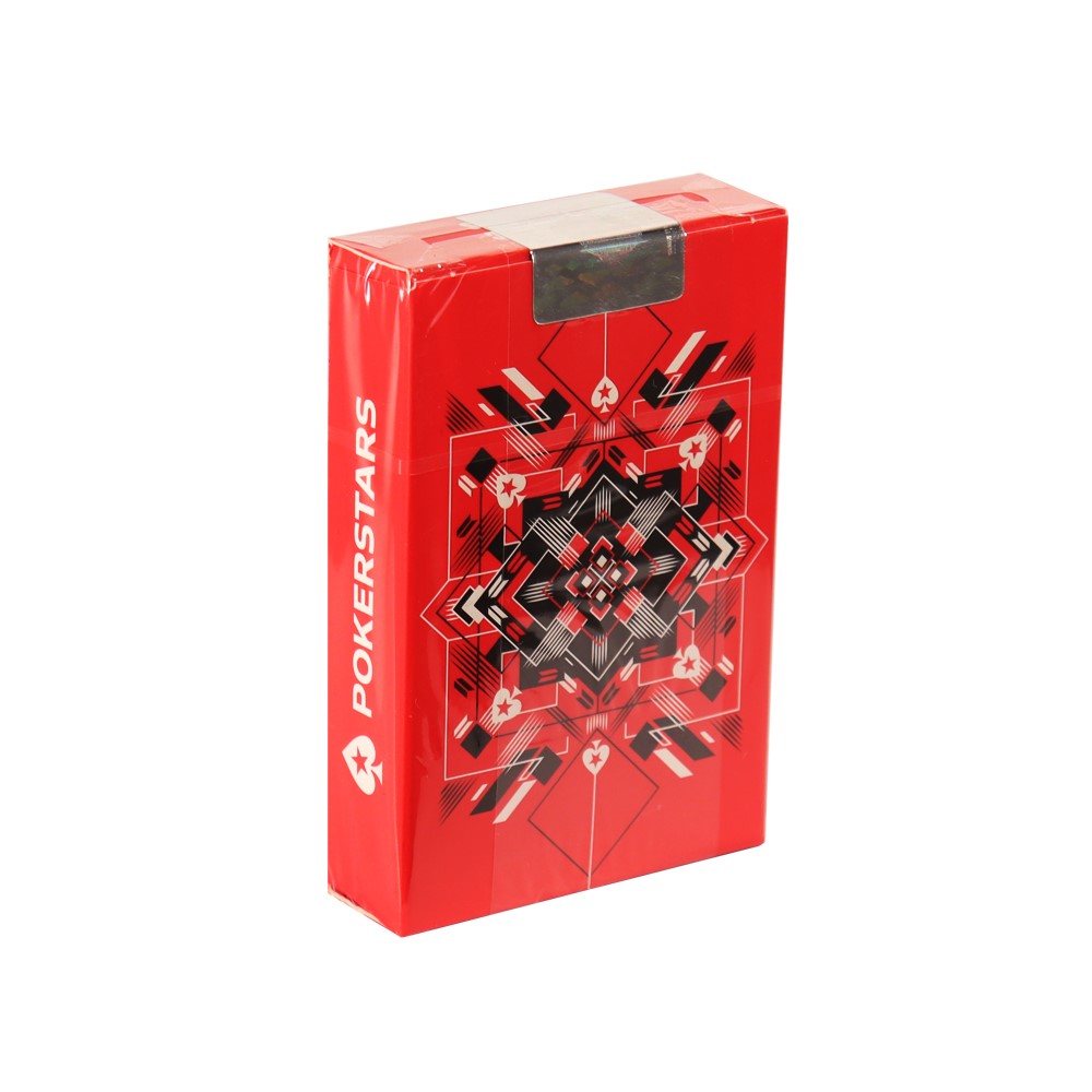 Casino quality playing cards featuring a geometric design in vibrant red. Contains two color suits and a cut card. This deck is made from durable plastic so will stand the test of time.