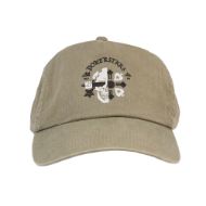 Aporta un look totalmente original a las mesas con esta gorra caqui de calavera y espada. Está fabricada al 100 % con algodón lavado y teñido; también incluye una hebilla de latón con correa de tela ajustable para que se adapte perfectamente a ti.