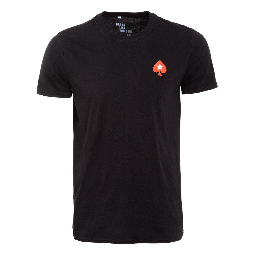 Πάρε μέρος στα τραπέζια με άνεση με αυτό το κλασικό μαύρο t-shirt. Απλό αλλά κομψό, αυτό το unisex t-shirt είναι κατασκευασμένο από 100% οργανικό βαμβάκι ring-spun, ώστε να νιώθεις αλλά και να φαίνεσαι όμορφος. Το εμβληματικό λογότυπο του PokerStars είναι τυπωμένο αριστερά στο στήθος, μαζί με το ‘est. 2001' καθώς γιορτάζουμε περισσότερα από 20 χρόνια συμμετοχής στο παιχνίδι.